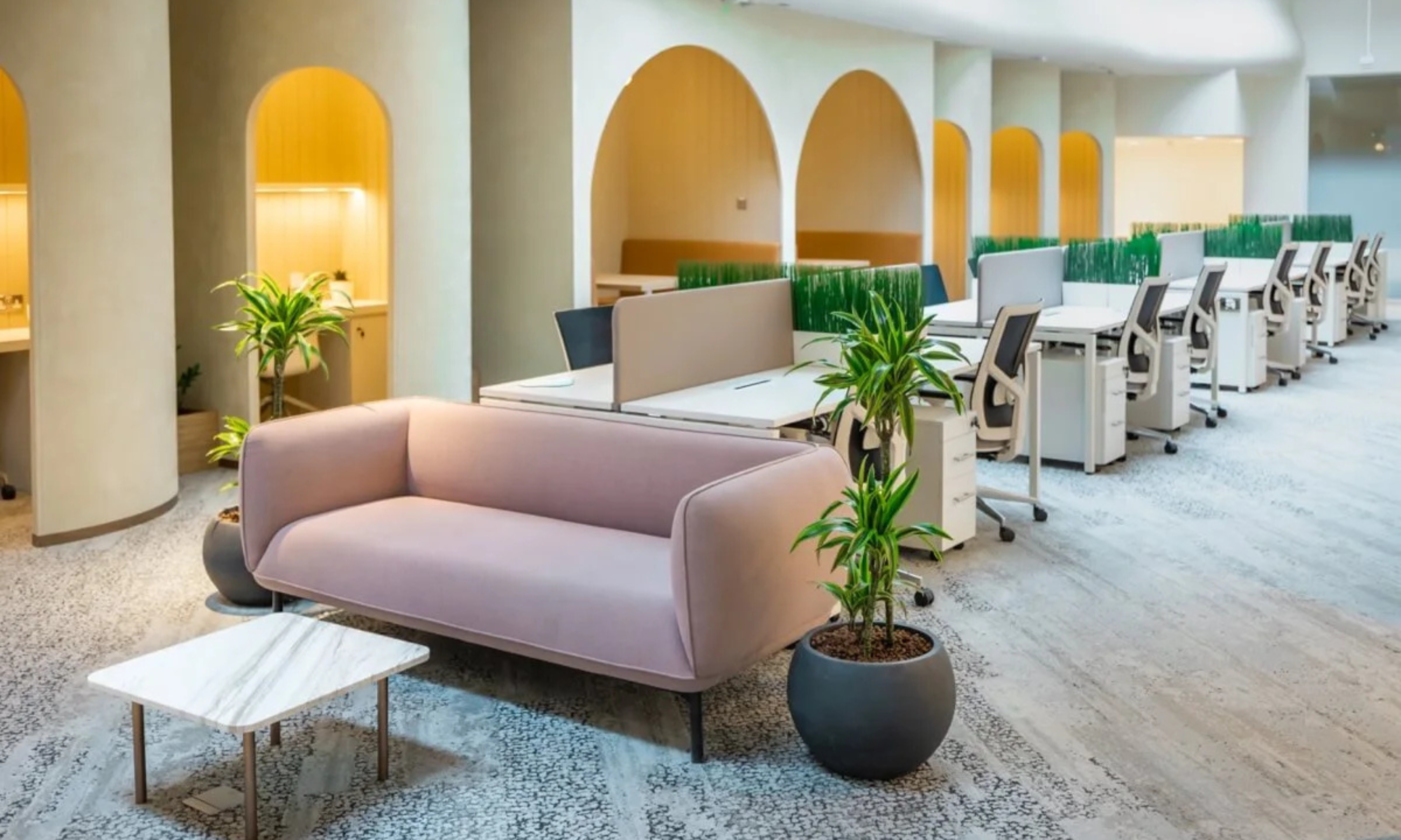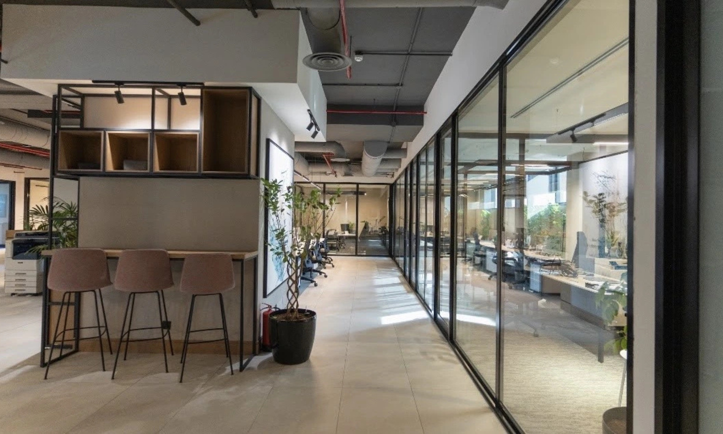 Well-designed offices and shared areas support both focused work and teamwork, while direct access to shops, restaurants, and services adds convenience to a professional and comfortable place to work.